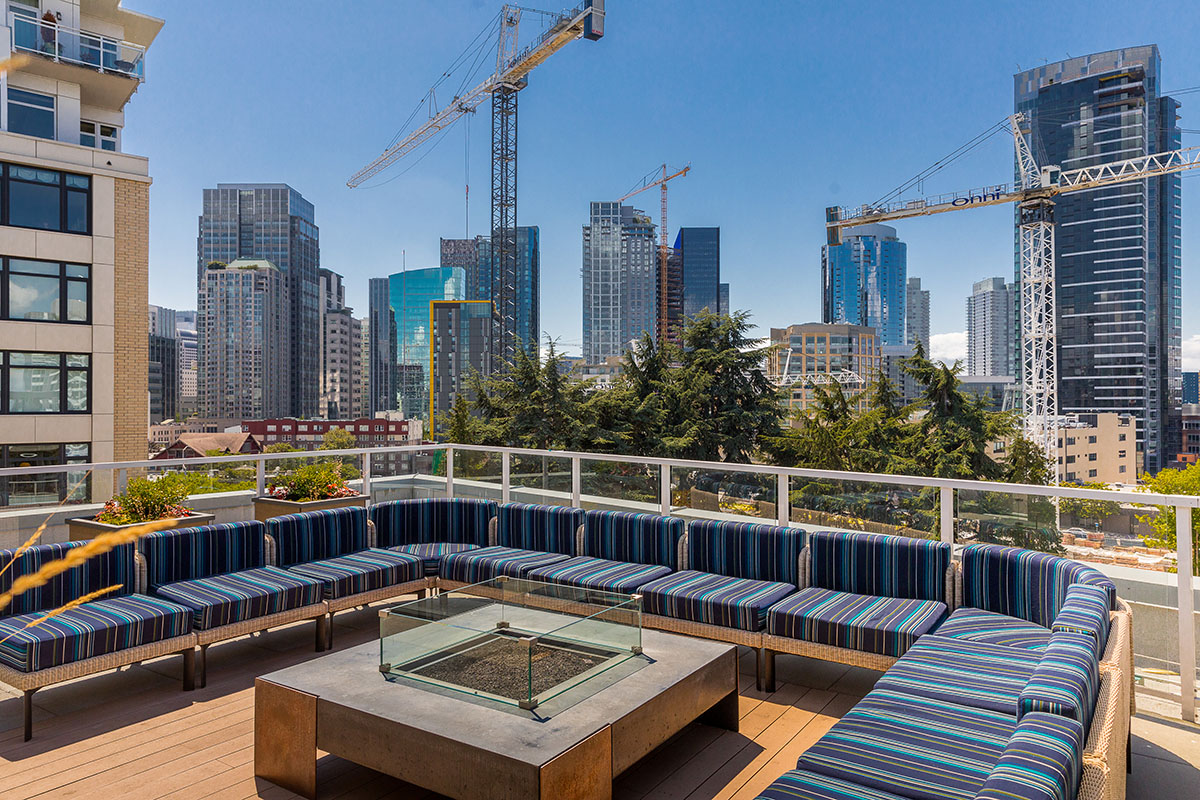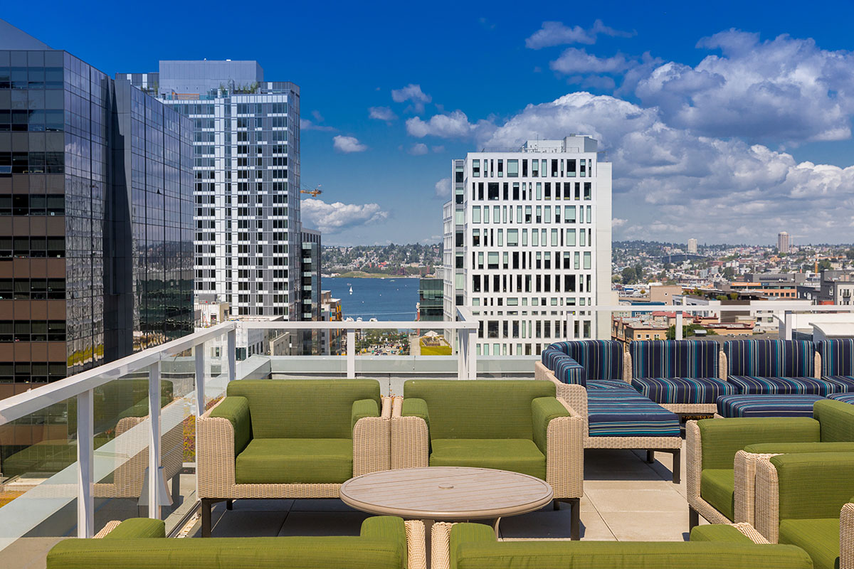 Developed by EQR, Cascade is the largest apartment complex in South Lake Union, featuring four mid-rise buildings and a total of 540 units. The interiors are decidedly urban, with a refined industrial vibe that reflects the neighborhood's heritage.