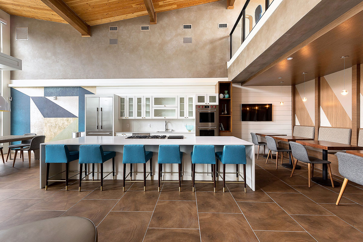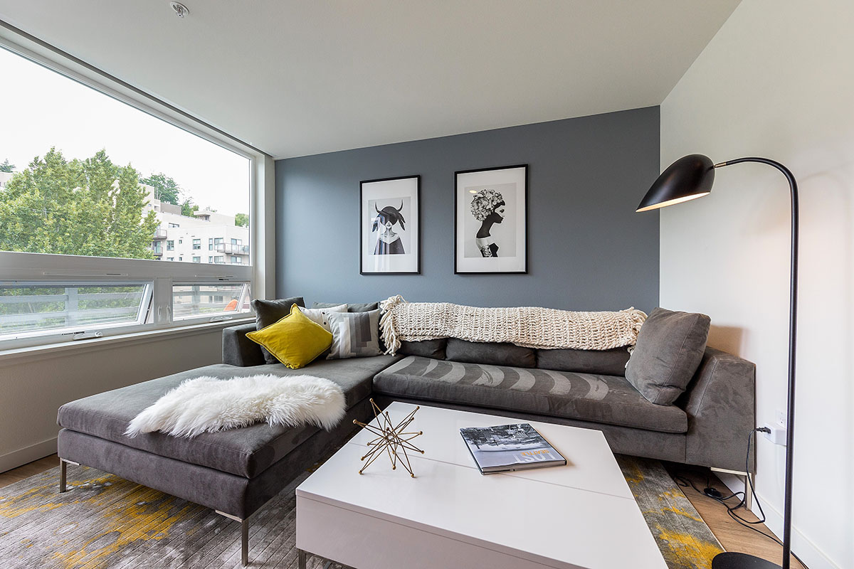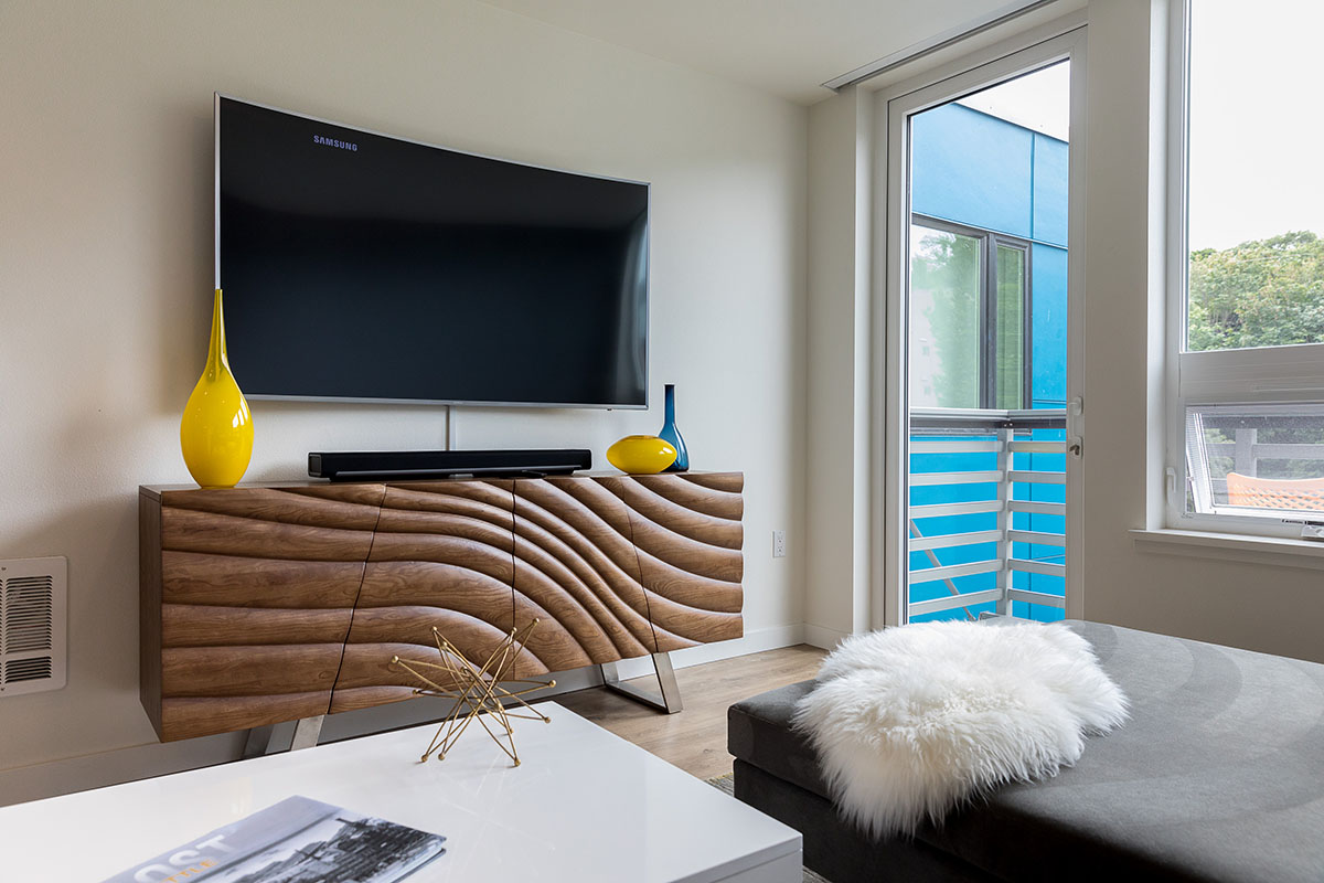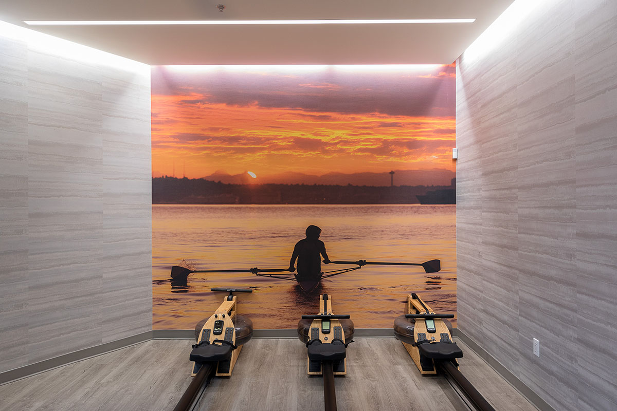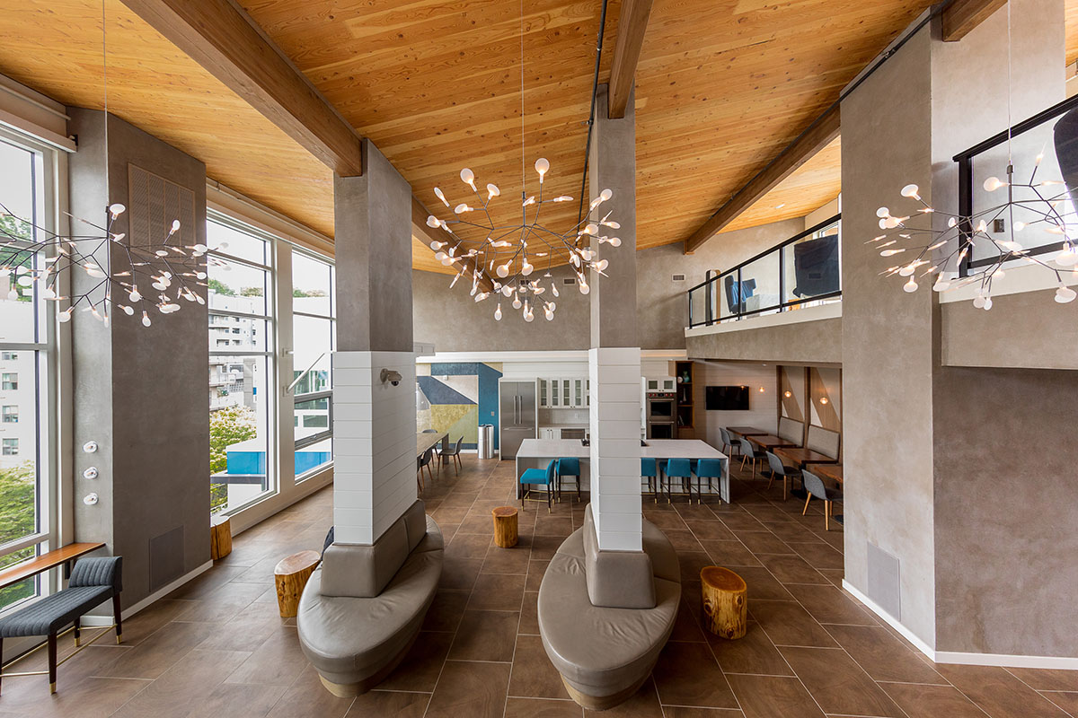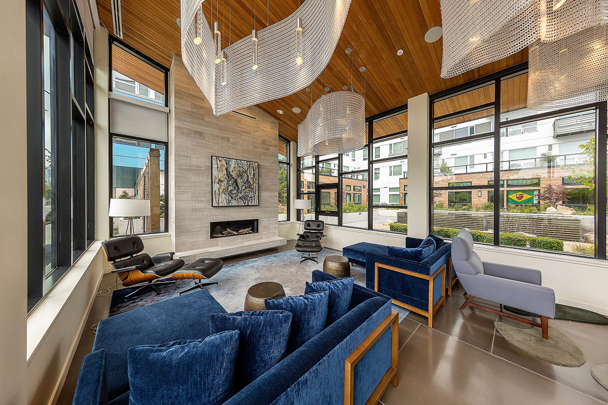 One Lakefront was designed as the ultimate in modern lakeside luxury. The 326-unit apartment complex, developed by Holland Partners includes two mid-rise buildings that feature stunning views of Lake Union. The ground floor of the building features a multitude of amenities, including a concierge, conference room, fireside pavilion lounge, fitness and wellness center, and a bike and kayak storage center. The building also features two expansive outdoor terraces, complete with private cabanas, hammocks and outdoor kitchens.