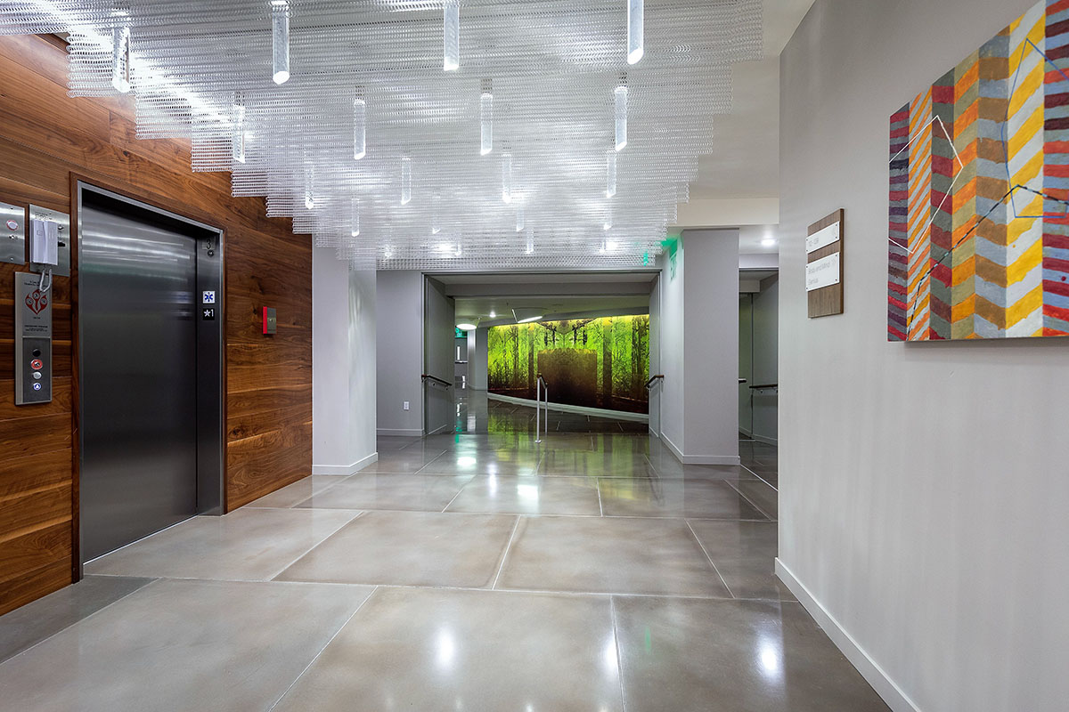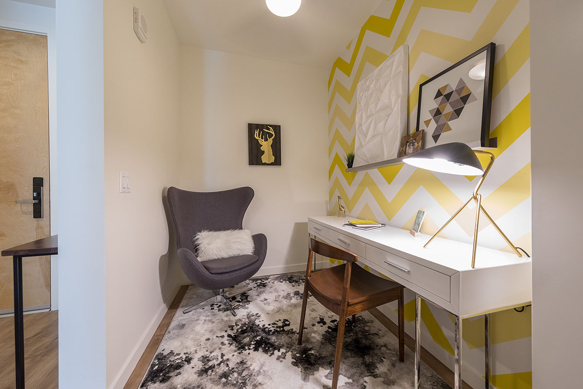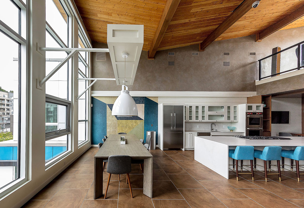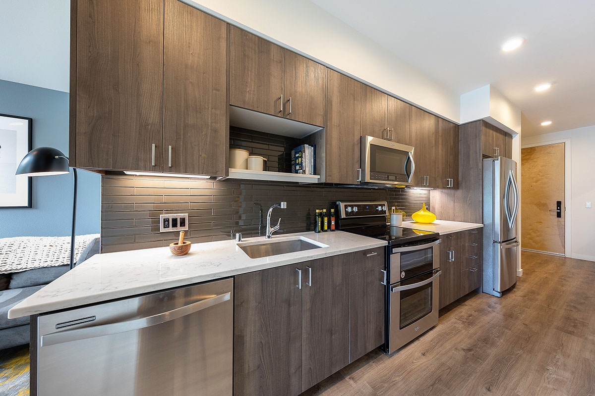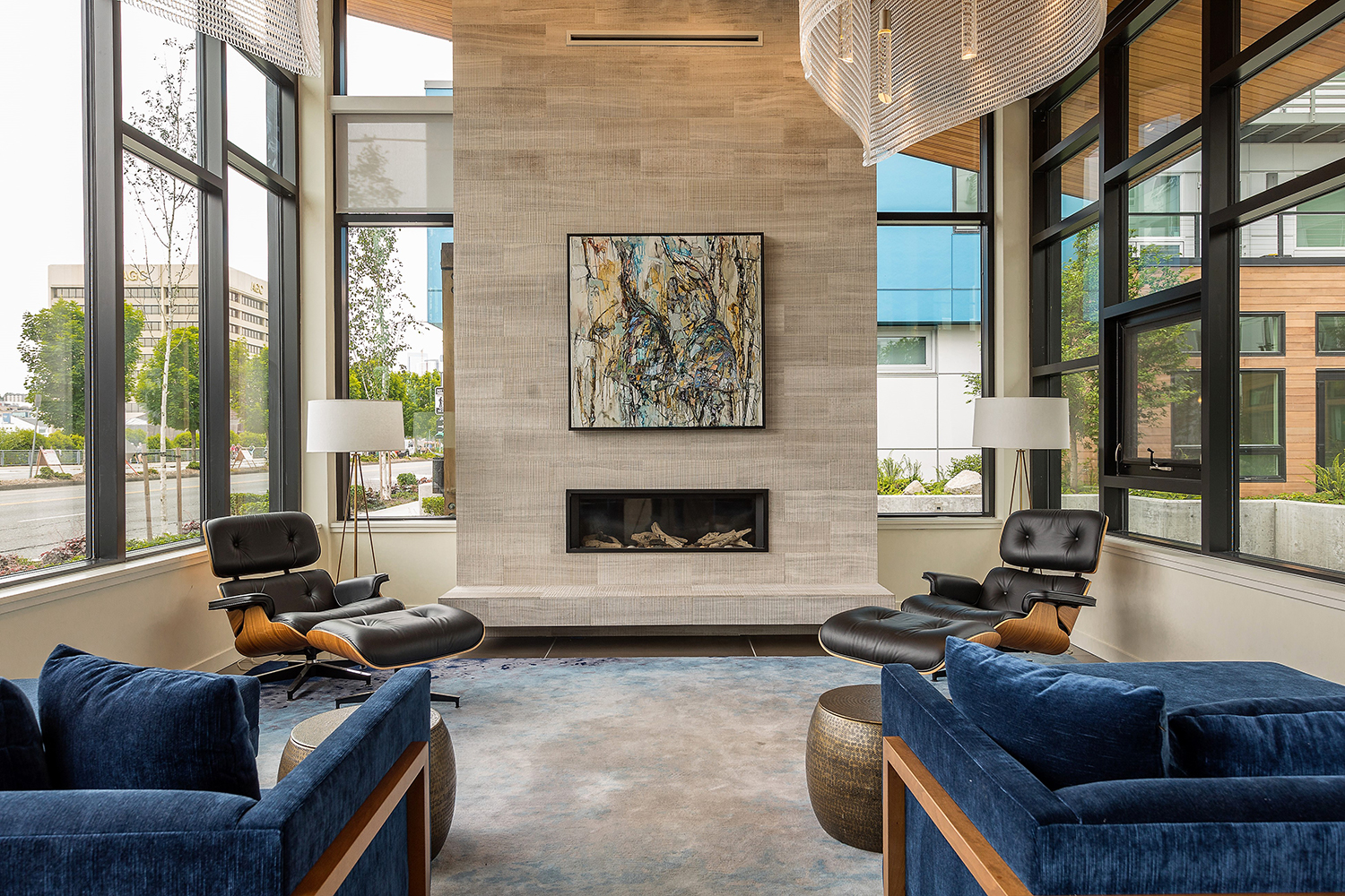 One Lakefront was designed as the ultimate in modern lakeside luxury. The 326-unit apartment complex, developed by Holland Partners includes two mid-rise buildings that feature stunning views of Lake Union. The ground floor of the building features a multitude of amenities, including a concierge, conference room, fireside pavilion lounge, fitness and wellness center, and a bike and kayak storage center. The building also features two expansive outdoor terraces, complete with private cabanas, hammocks and outdoor kitchens.