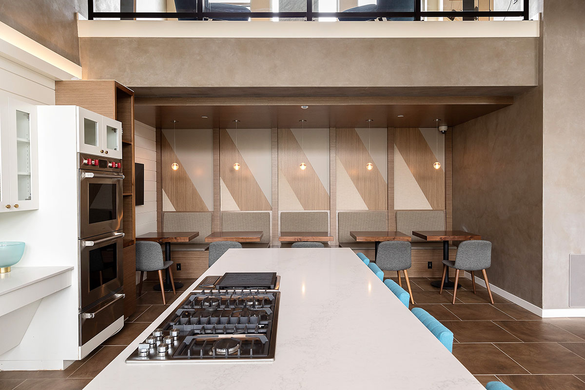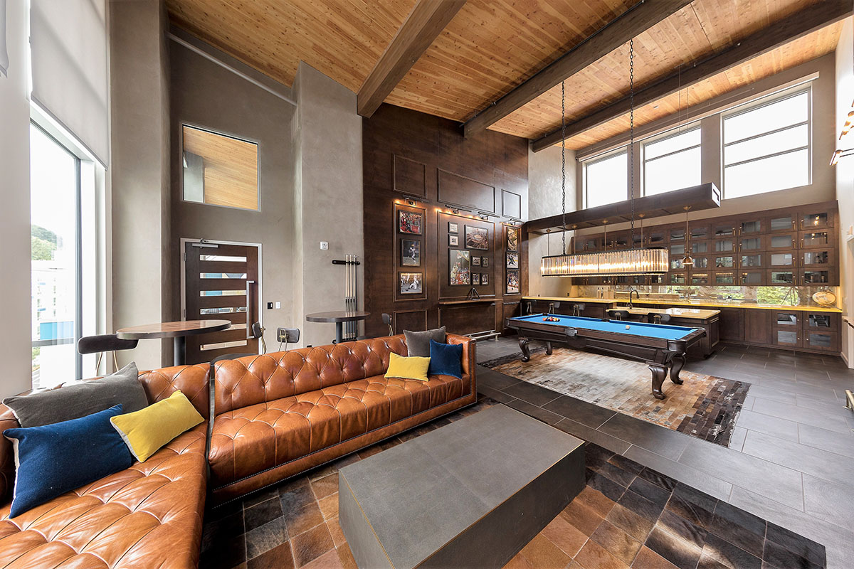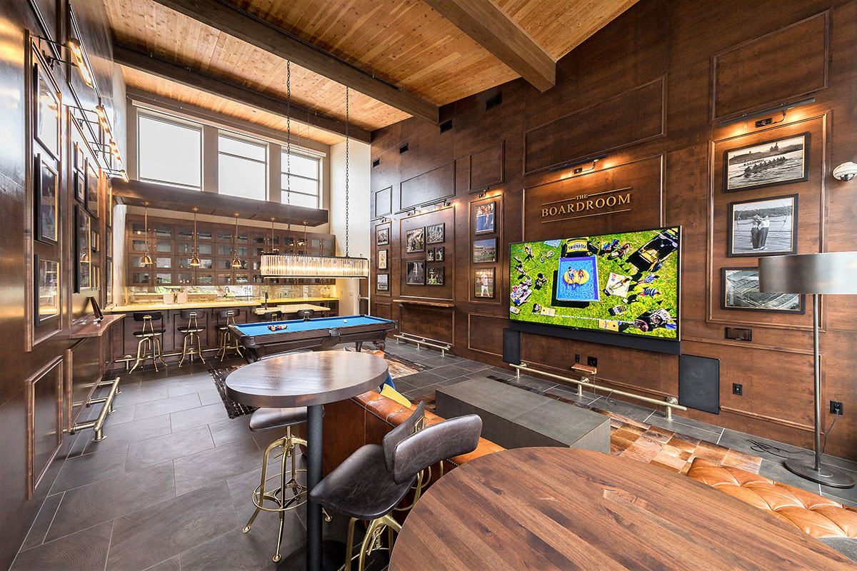 The heart of the project is the two-level Skylounge, which includes a nautically inspired modern dining room and exhibition kitchen. Adjacent to the Skylounge is "The Boardroom" -the ultimate sports lounge featuring a pool table and a spectacular bar with backlit onyx countertop and liquor lockers.